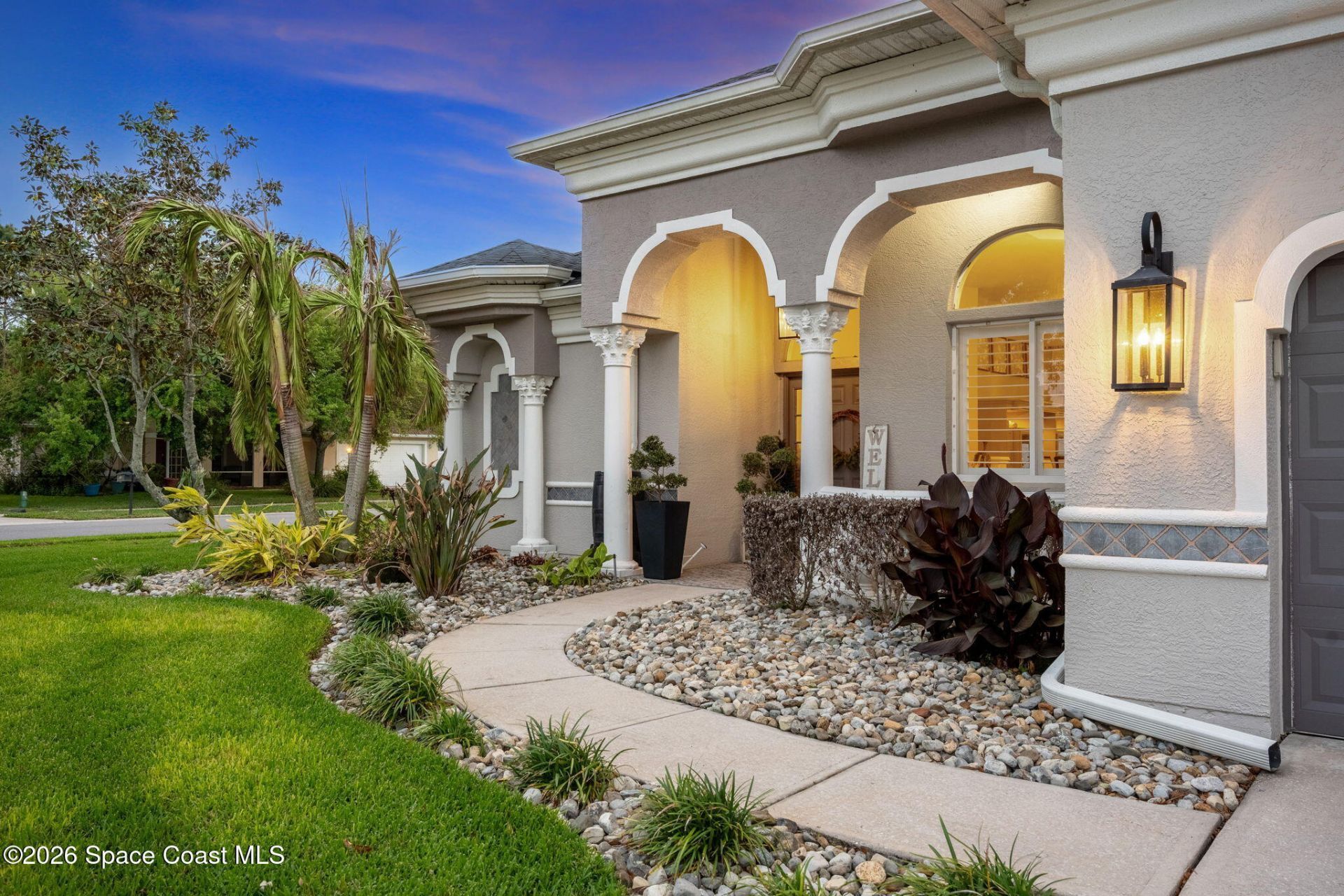 Step into something truly special in the gated community of Hammock Lakes in West Melbourne. From the moment you arrive, the pride of ownership is undeniable. This home stands out. Offering 5BR, 3BA, and an oversized 779 SF 3-car garage, all set on .28 acres, this 3,087 SF residence is designed to impress. Soaring 10 ceilings, 8 archways, plantation shutters, and a tray ceiling dining room create an elegant yet inviting feel. The expansive kitchen, custom pantry, and beautifully upgraded laundry room are tailored for both function and style. The primary suite features dual closets and a versatile flex space that opens to your outdoor retreat. Built in 2025, the custom saltwater pool and 8-person spa are the showstoppers, complete w/ a travertine deck, tongue-and-groove ceiling, gas fire pit, and private fencing. This backyard is a true oasis-no vacation needed. Major updates include a 2024 roof, a 2025 HWH, & a 2019 HVAC system. Exceptional inside and out, this one is unforgettable!