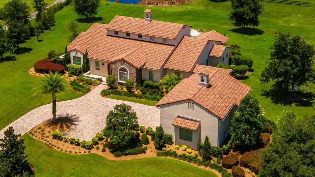 Discover your dream equestrian retreat with this stunning 5.34-acre Tuscan-style estate, located within a beautifully maintained and secure gated community featuring miles of scenic riding trails. Surrounded by an expansive 8,000-acre State Forest, this property offers unmatched privacy and natural beauty-yet remains just 20 minutes from the World Equestrian Center and only 5 minutes from shopping, dining, and medical facilities. Ideally positioned between the Rainbow River and Ocala, it delivers both convenience and tranquility.The luxurious residence boasts over 3,800 square feet under air, offering 4 bedrooms, 4 bathrooms, plus a versatile fifth room on the second floor. Designed with both elegance and functionality in mind, the home features a dramatic living area with cathedral ceilings, a gas fireplace, and an open custom kitchen complete with high-end finishes, a wine cabinet, and a spacious pantry. A formal dining room, abundant closet space, tray ceilings throughout, travertine flooring inside and out, plaster walls, and precast trim details elevate the home's refined character. The expansive primary suite provides a private retreat, while the split floor plan ensures comfort and privacy for all.A breezeway leads to a generous two-car garage with an additional air-conditioned upstairs room-ideal for guests, an office, or hobby space. This award-winning model, recognized by the Builders Association in 2016, blends timeless architecture with modern living.Outdoor living is equally impressive, featuring a heated 41' x 14' pool and spa added in 2020, perfectly positioned to capture breathtaking sunset views. Equestrian amenities include a beautifully constructed 3-stall concrete barn (14x14 stalls) with a tack room, full bathroom, and attached garage (built in 2022), along with two paddocks equipped with automatic waterers, a 200 x 100 arena, and durable creosote board fencing. Ride directly from your backyard onto miles of private trails.Thoughtfully landscaped with mature and newly planted trees for added shade and privacy, this turnkey property is offered newly furnished, making it truly move-in ready. A rare opportunity to own a luxury equestrian estate where lifestyle, location, and design come together seamlessly.