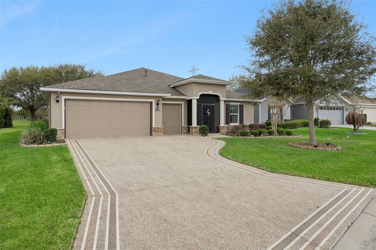 PRICE REDUCTION! What an exemplary home that's been very tastefully and thoughtfully upgraded. Over $80,000+ worth of upgrades has been spent perfecting this home and it's located on a Premium lot overlooking the 13th green of the championship golf course in Arlington Ridge! From the moment you pull up to the house you start to notice the upgrades with the Epoxy painted driveway, the golf cart garage and the screened in front porch with an oversized screen door. You will then notice that the front door opens outward (This change is from the seller's experience of living in Miami through many hurricanes so that the hurricane force winds cannot blow the door inwards). Once inside you will notice the porcelain tile & the tight grout lines with deeper base boards. Glance across to the kitchen and the large eyebrow island and the quartz counters stand out but look closer and there is the 42 tall upper cabinets that are 15 deep (To accommodate all sizes of large dinnerware), the refrigerator has been moved to a more workable position to create more counter space around the 30 GE cooktop with 5 burners and the built-in GE oven and microwave combo. Oh, and the cooktop hood vents to the outside, the appliances are stainless steel. There are pan draws below the cook top and slide outs in the other lower cabinets and all cabinets are soft close drawers or doors. Look up and you will see the crown molding that transitions into the Primary bedroom where you will notice the non-standard bay window overlooking the 13th green. Do you like tech? The HVAC thermostat, the CCTV security cameras and the irrigation system can be controlled remotely. There are many more upgrades/features in this home. Thoughtfully constructed for energy efficiency, the home offers exceptionally low utility costs, featuring spray foam insulation in exterior block walls, radiant barrier roofing, R38 attic insulation, and double-pane Low-E argon gas windows ensuring year-round comfort and peace of mind. The gas tankless hot water heater also add to the energy savings. The new roof installed in 12/2024 has an additional weatherproof membrane installed over & above the current roof membrane code regulations and should the power go out there is a natural gas Generac whole house generator (More Miami hurricane experience by the seller). Step onto the 24'x10' screened lanai, a serene outdoor sanctuary ideal for morning coffee, evening relaxation, or simply enjoying Florida's gentle breezes in the privacy created by solid wall design on either side of the lanai. Set within the award-winning Arlington Ridge Golf Community, highly acclaimed by Where to Retire magazine. Residents enjoy access to an exceptional suite of amenities, including: Full-service restaurant & pub, state-of-the-art fitness center, resort-style swimming pool & on-site movie theater. Ideally located in South Leesburg, this residence is moments from grocery shopping, medical facilities & restaurants. Enjoy the convenience of being less than 1 hour from Orlando's International airport and world renowned attractions with both the Atlantic and Gulf Coast beaches reachable in under 2 hours. This distinguished home offers the perfect balance of elegance, efficiency and leisure in one of Central Florida's most desirable active adult communities. An exceptional opportunity to elevate your Florida lifestyle-schedule your private showing today to fully appreciate what these fastidious seller's have created with this home!