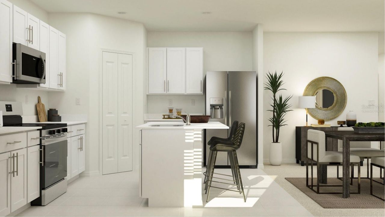 One or more photo(s) has been virtually staged. The first floor of this two-story Eclipse shares an open layout between the kitchen, dining area and family room for easy entertaining with access to the patio. A secondary bedroom on the first floor can easily be converted to a guest room or home office. Upstairs is a versatile loft that serves as an additional shared living space, along with three secondary bedrooms and a luxe owner's suite comprised of an en-suite bathroom and a large walk-in closet. Crosswinds is an amenity-rich masterplan community of new single-family homes, located in Haines City. Amenities include: a resort style pool, clubhouse, dog park, walking trails, basketball court and soccer field. Close to major roads, parks, Advent Health Heart of Florida, restaurants, shopping.
