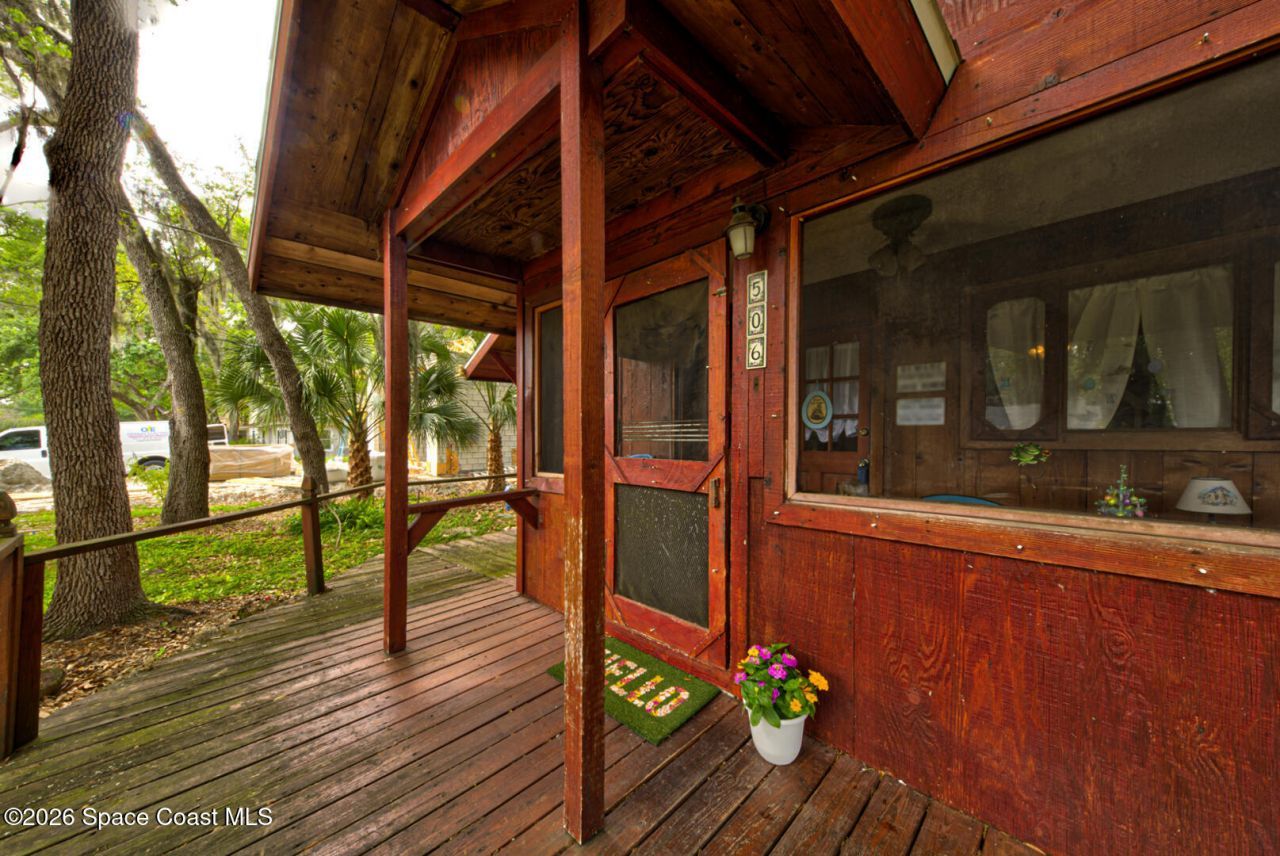 Beautiful and unique all wood home tucked away in the heart of Palm Bay. Surrounded by mature trees and lush greenery, this 1978 property offers a warm cabin like feel that makes you forget how close you are to everything. Inside, vaulted ceilings and a decorative fireplace create a cozy and inviting atmosphere full of character. Major updates include a 2018 roof, new septic system, new AC, and 2017 hot water heater. Enjoy the privacy and charm of this one of a kind retreat while being just minutes from shopping, dining, and the beaches.